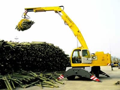 QLYS-DZ系列液壓輪胎式抓料機是一種流動式裝卸、堆垛和拆垛專用設備,含有多項專利技術。該產(chǎn)品采用折疊式吊臂,克服了汽車起重機軟索起重時抓斗易打轉和作業(yè)時無下壓力,而對較積實的物料抓取效果差等不足。是對草葦、木材、毛竹、廢紙、土、砂、石等泡松散軟原料進行裝卸、堆垛和拆垛作業(yè)的最佳設備。