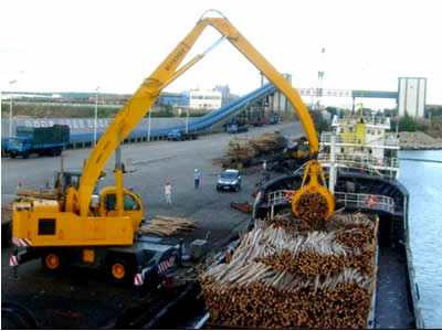 適用工況:碼頭卸船;港口貨場(chǎng)堆儲(chǔ);火車(chē)卸煤、礦石、鋼管;造紙、人造板廠(chǎng)圓木裝卸;鋼廠(chǎng)廢鋼裝卸等等;